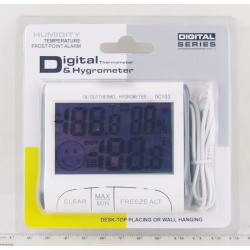Термом. цифр. (внешний датчик+ комнатн.) HTC-2B с гидрометром, часами, желт. упаковка