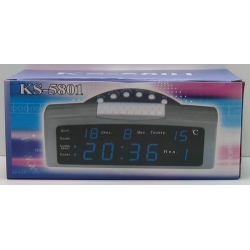 Часы-буд. электронные с темп. №5801 син. циф. дата